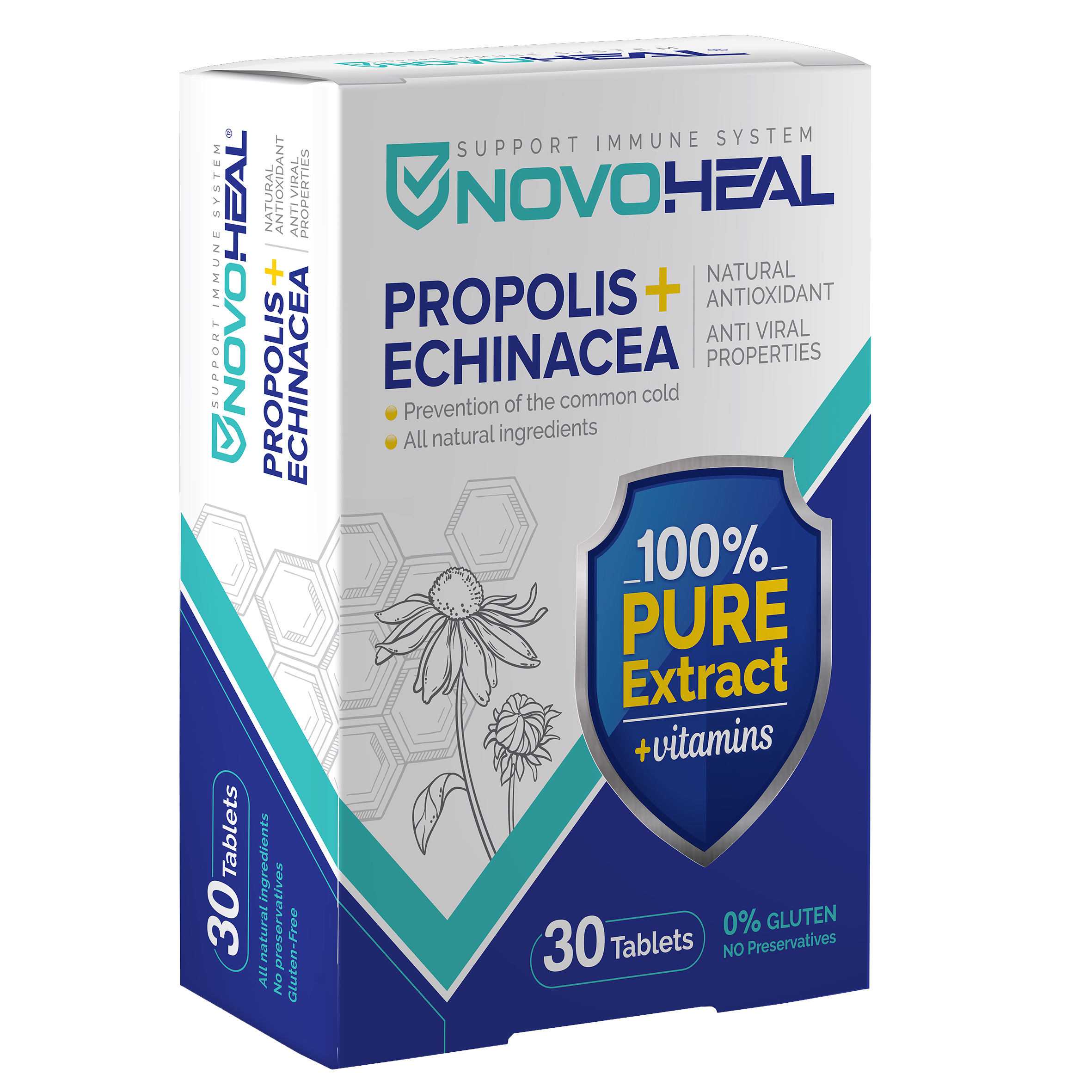 NOVOHEAL contains the active ingredients Propolis and Echinacea purpurea extract, which is used as an immune system booster with antiviral, antibacterial and anti-inflammatory properties to help